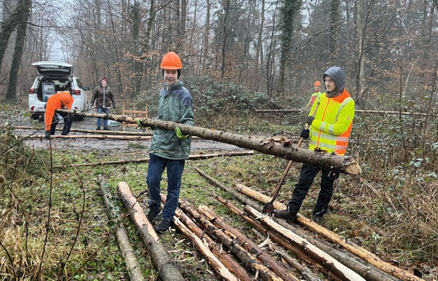Für unser diesjähriges Stammeslager haben wir im Wald Stangenholz geschlagen. Gemeinsam mit dem Förster haben wir passende Bäume gefällt, entastet und entrindet. Das Wetter war etwas feucht. Aber Spaß hatten wir trotzdem. Endlich konnten wir unseren Gideon-Schlachtruf mal richtig einsetzen: Baaaaaaum fällt!